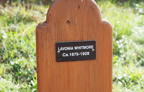 Members of the Whitmore family interred at the Gualala Cemetery include James Charles Whitmore (1858-1942) and his wife Lavonia Dixon Whitmore (1875-1928), along with their infant grandson Louis Walter Peterson, Jr. (1927-1927). All three were reportedly buried in the family plot, the onsite location of which lacked historic grave markers but has been identified by a descendant.